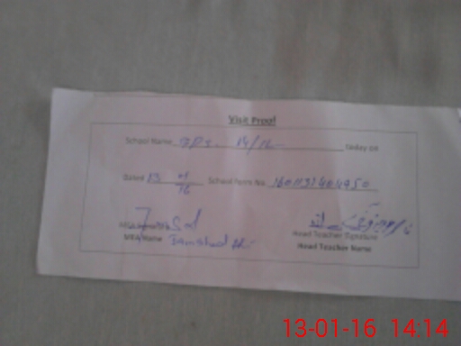 | School Visited by School Health & Nutrition Supervisor (No. of Visits) | 2 | Name1: | YASIR | Name2: | YASIR |
