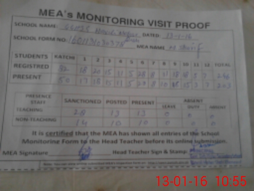 | Certified that this School was Inspected by the Undersigned MEA/DMO Today and the Information Stated Above is as Per Record. | |||||