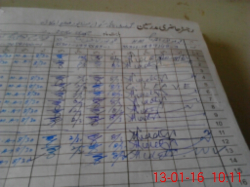 | CNIC | Full Name | Designation | R/C | Absence During Last Calender Month |