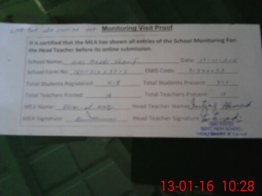 | Certified that this School was Inspected by the Undersigned MEA/DMO Today and the Information Stated Above is as Per Record. | |||||