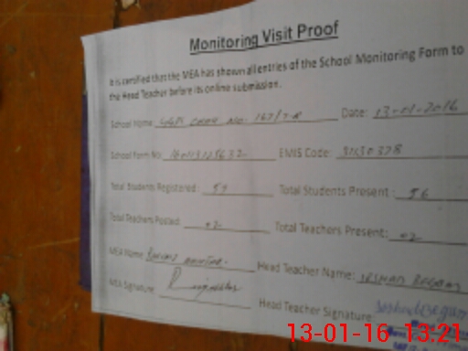 | Attendance Register | Head Teacher | MEA with School | Visit Proof |