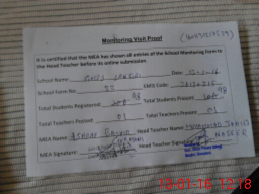 | EMIS Code: 36120315 | Name of School: GMPS SANGRI SHUJABAD DISTT. MULTAN | |||