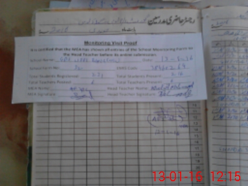 | Attendance Register | Head Teacher | MEA with School | Visit Proof |
