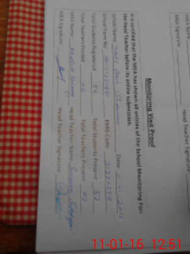 | Certified that this School was Inspected by the Undersigned MEA/DMO Today and the Information Stated Above is as Per Record. | |||||