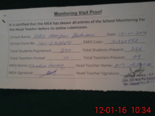 | Certified that this School was Inspected by the Undersigned MEA/DMO Today and the Information Stated Above is as Per Record. | |||||