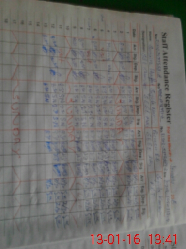 | CNIC | Full Name | Designation | R/C | Absence During Last Calender Month |