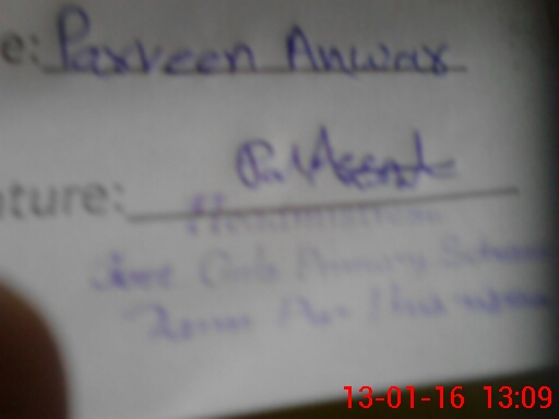 | Name: Sh**** Wa**** Designation: (School Headmaster's/Headmistress's) PST Phone/Cell Number: 03**** |