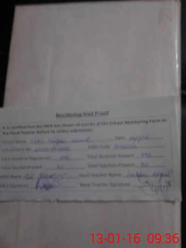 | Attendance Register | Head Teacher | MEA with School | Visit Proof |