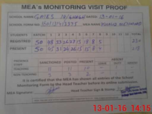 | EMIS Code: 36410128 | Name of School: GMES 14 GHAGH, ABDUL HAKIM | |||