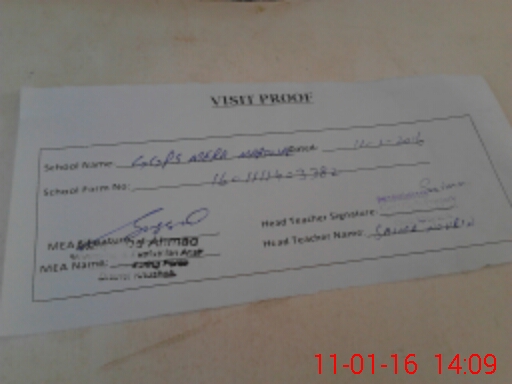 | Attendance Register | Head Teacher | MEA with School | Visit Proof |