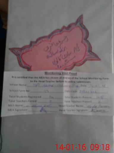 | Attendance Register | Head Teacher | MEA with School | Visit Proof |