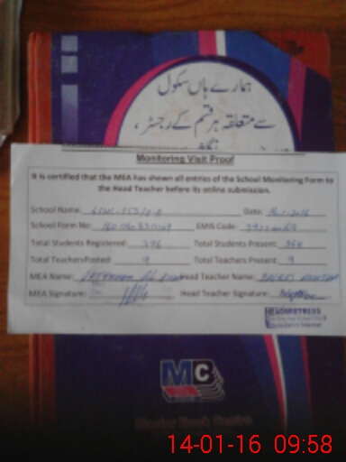 | Attendance Register | Head Teacher | MEA with School | Visit Proof |