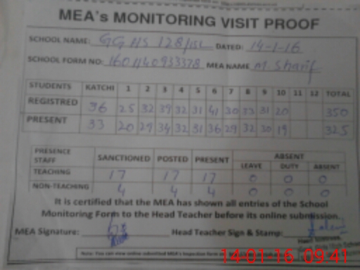 | Certified that this School was Inspected by the Undersigned MEA/DMO Today and the Information Stated Above is as Per Record. | |||||