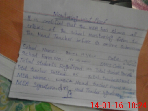 | Certified that this School was Inspected by the Undersigned MEA/DMO Today and the Information Stated Above is as Per Record. | |||||