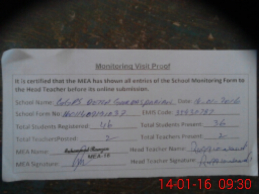 | Certified that this School was Inspected by the Undersigned MEA/DMO Today and the Information Stated Above is as Per Record. | |||||