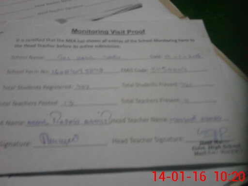 | Attendance Register | Head Teacher | MEA with School | Visit Proof |