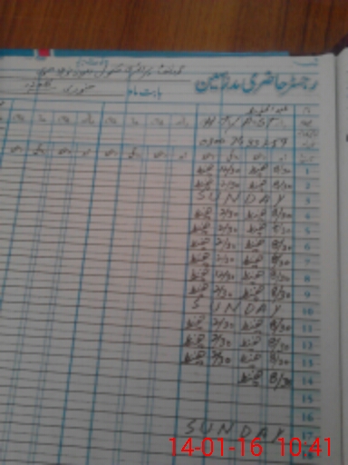 | CNIC | Full Name | Designation | R/C | Absence During Last Calender Month |