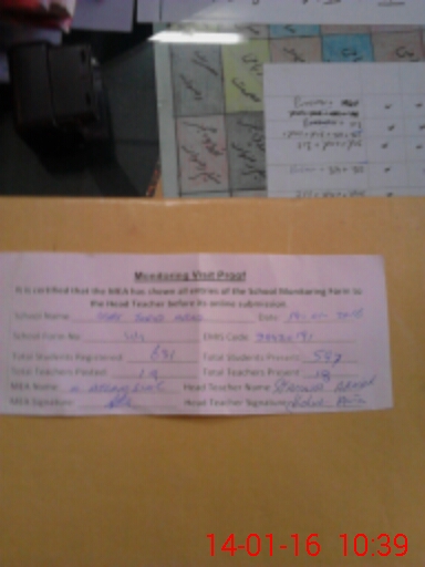 | Attendance Register | Head Teacher | MEA with School | Visit Proof |