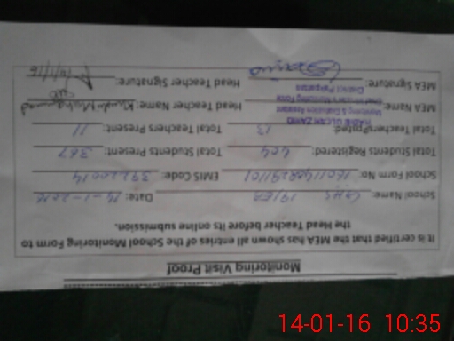 | Certified that this School was Inspected by the Undersigned MEA/DMO Today and the Information Stated Above is as Per Record. | |||||