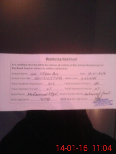 | Certified that this School was Inspected by the Undersigned MEA/DMO Today and the Information Stated Above is as Per Record. | |||||