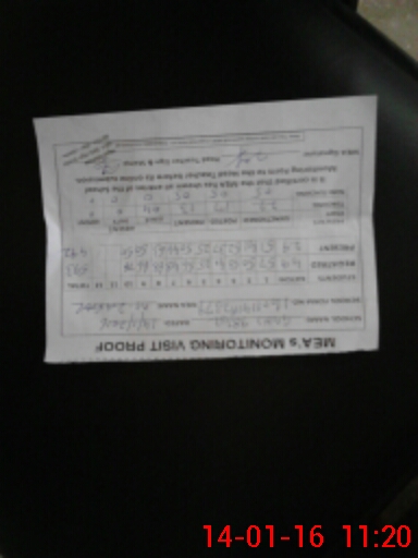 | Monitoring Date: 14-01-2016 | Start Time: 14-01-2016 10:13 AM | End Time: 14-01-2016 11:23 AM | Name of MEA: Mu**** Za**** (S**** | |