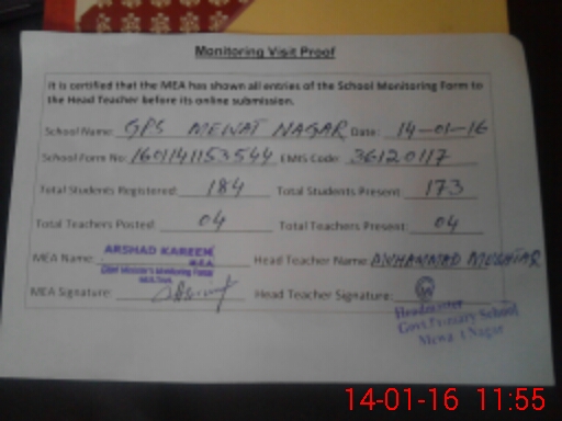 | EMIS Code: 36120117 | Name of School: GPS MEWAT NAGAR SHUJABAD | |||