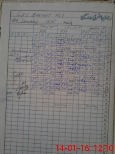 | CNIC | Full Name | Designation | R/C | Absence During Last Calender Month |