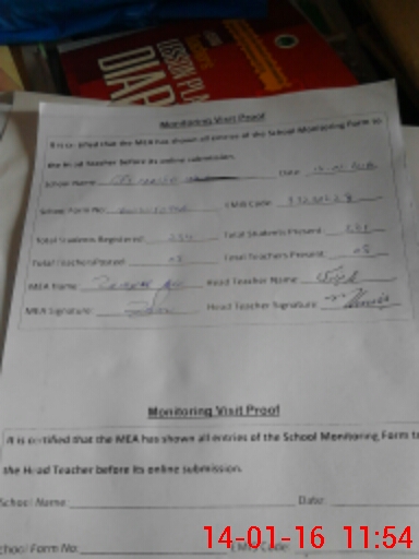 | Attendance Register | Head Teacher | MEA with School | Visit Proof |