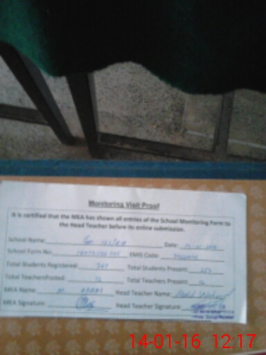 | Certified that this School was Inspected by the Undersigned MEA/DMO Today and the Information Stated Above is as Per Record. | |||||