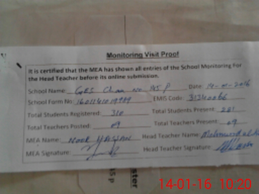 | EMIS Code: 31340066 | Name of School: GES CHAK NO 145/P | |||