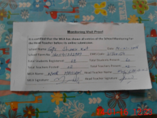 | EMIS Code: 31340154 | Name of School: GPS SHAKIR KOT | |||