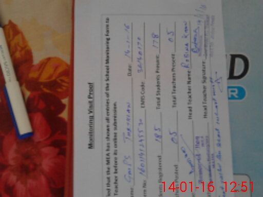| Attendance Register | Head Teacher | MEA with School | Visit Proof |