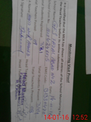 | EMIS Code: 31330470 | Name of School: GES FAZAL ABAD NO. 2 | |||