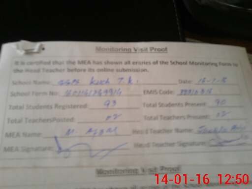 | Certified that this School was Inspected by the Undersigned MEA/DMO Today and the Information Stated Above is as Per Record. | |||||