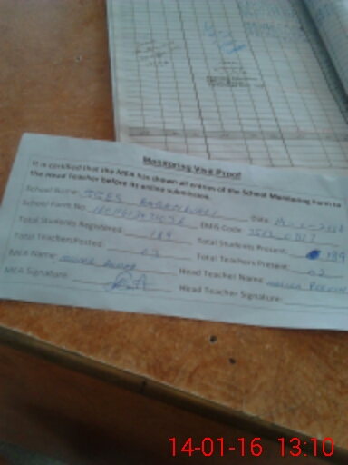 | Attendance Register | Head Teacher | MEA with School | Visit Proof |