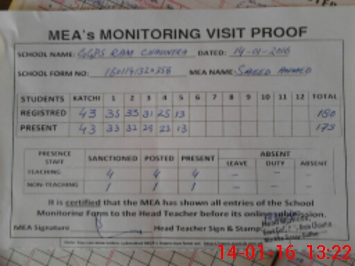 | Attendance Register | Head Teacher | MEA with School | Visit Proof |