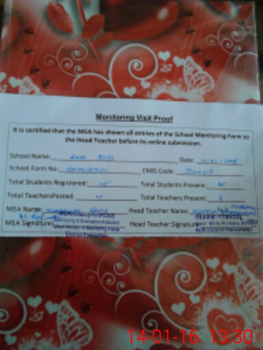 | Attendance Register | Head Teacher | MEA with School | Visit Proof |