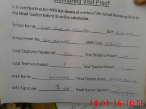| Certified that this School was Inspected by the Undersigned MEA/DMO Today and the Information Stated Above is as Per Record. | |||||
