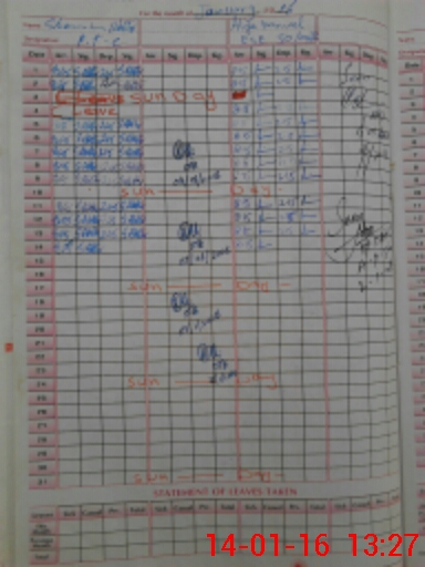 | CNIC | Full Name | Designation | R/C | Absence During Last Calender Month |