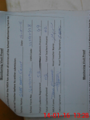 | Certified that this School was Inspected by the Undersigned MEA/DMO Today and the Information Stated Above is as Per Record. | |||||
