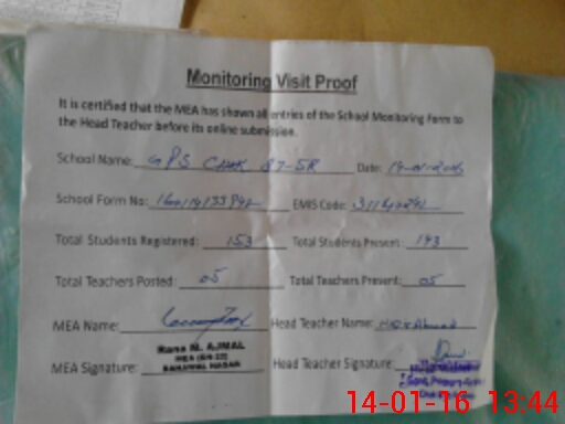 | Certified that this School was Inspected by the Undersigned MEA/DMO Today and the Information Stated Above is as Per Record. | |||||