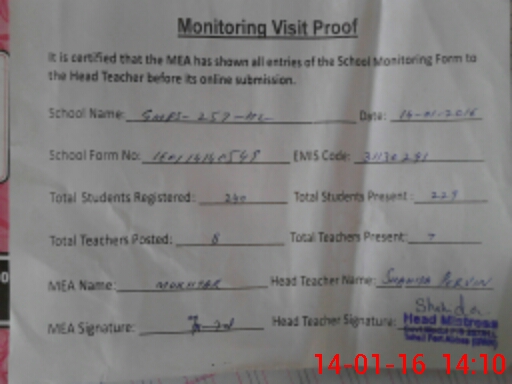 | Certified that this School was Inspected by the Undersigned MEA/DMO Today and the Information Stated Above is as Per Record. | |||||