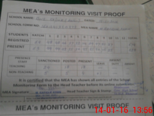 | Certified that this School was Inspected by the Undersigned MEA/DMO Today and the Information Stated Above is as Per Record. | |||||