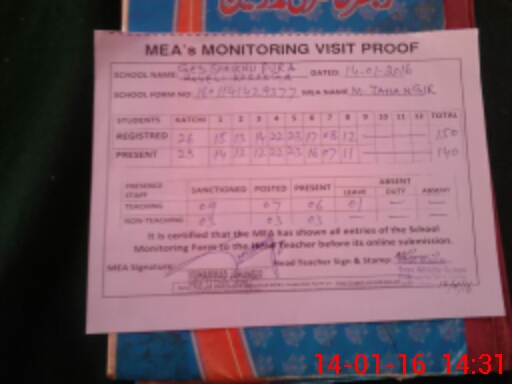 | Certified that this School was Inspected by the Undersigned MEA/DMO Today and the Information Stated Above is as Per Record. | |||||