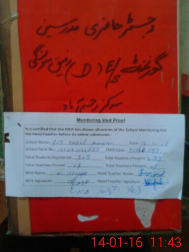 | Attendance Register | Head Teacher | MEA with School | Visit Proof |