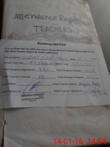 | Attendance Register | Head Teacher | MEA with School | Visit Proof |