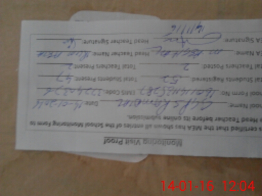 | Attendance Register | Head Teacher | MEA with School | Visit Proof |