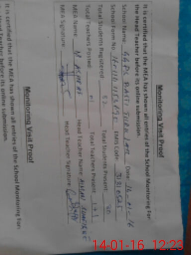 | Certified that this School was Inspected by the Undersigned MEA/DMO Today and the Information Stated Above is as Per Record. | |||||