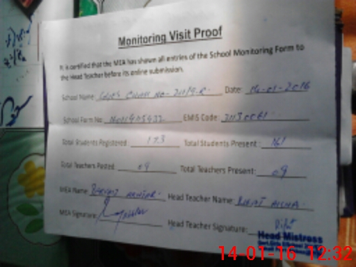 | Attendance Register | Head Teacher | MEA with School | Visit Proof |