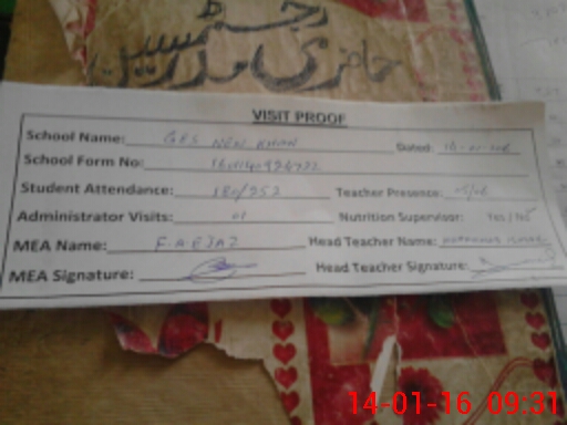| Attendance Register | Head Teacher | MEA with School | Visit Proof |